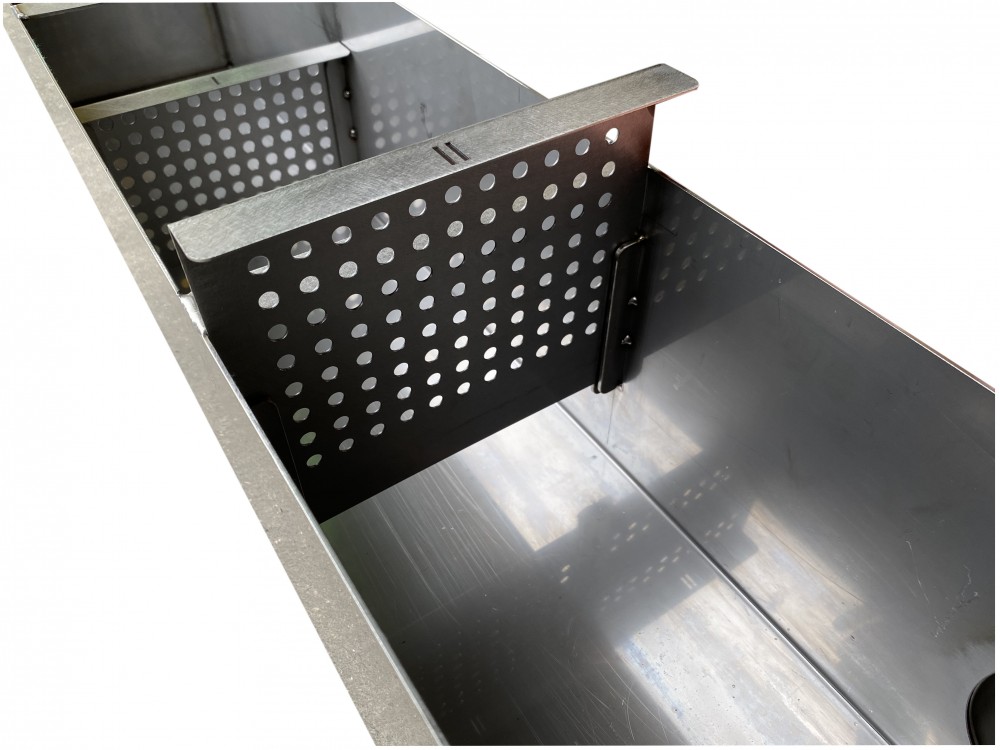 Zadaniem separatora jest dwuetapowe przechwytywanie wszelkich zanieczyszczeń stałych tj. piasek, włosy, sierść oraz włókna, które w procesie prania są wypłukiwane z dywanów. Separator ustawiamy pod spływem automatu tak aby woda wpadała do komór przechwytujących oddzielonych dwoma przegrodami filtrującymi. Oczyszczona woda wypływa rurą spustową do której możemy podłączyć wąż lub rurę odprowadzającą do kanalizacji. Separator przechwytuje 95% zanieczyszczeń stałych co zapobiega kumulacji zanieczyszczeń pod automatem ale również zapychaniu rur kanalizacyjnych. Separator został tak zaprojektowany aby działał bez czyszczenia 8 godzin ciągłej pracy automatu, a dzięki zastosowaniu wysuwanych siatek filtrujących czyszczenie jest bardzo proste i szybkie.